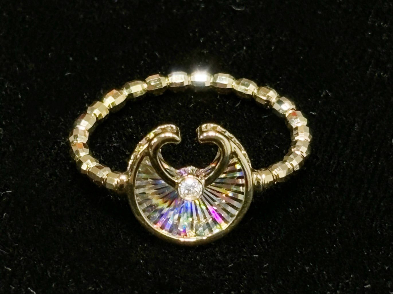 このリングは、高品質な18金素材で作られ、職人が手掛けた精巧なカットにより、一つ一つ異なる光の反射が楽しめます。その輝きは、どんなシーンでもあなたの魅力を引き立てます。