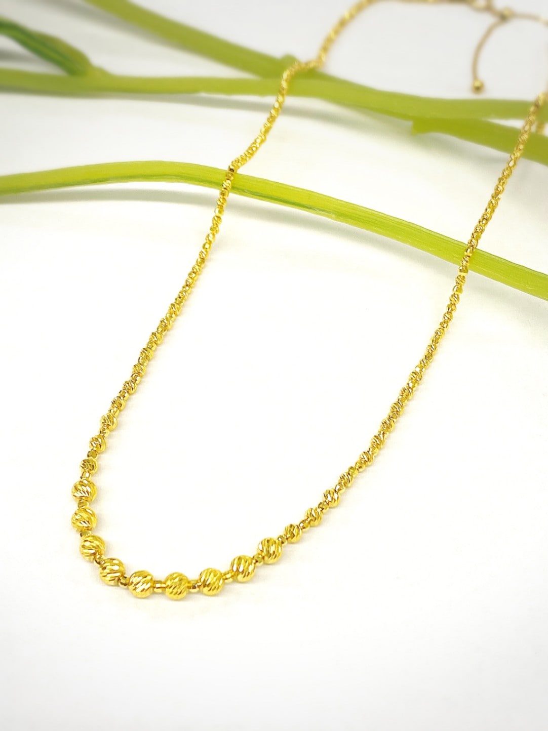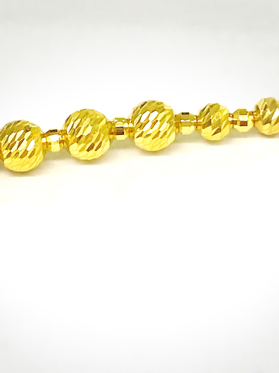 高級素材の純金ならではの、黄金色のスラッシュボールとミラーボールがデコルテで華やかに煌めくグラデーションネックレスをお作りしました。これ一つで、お肌をパッと明るくみせてくれるボリューム感たっぷりのネックレスです。