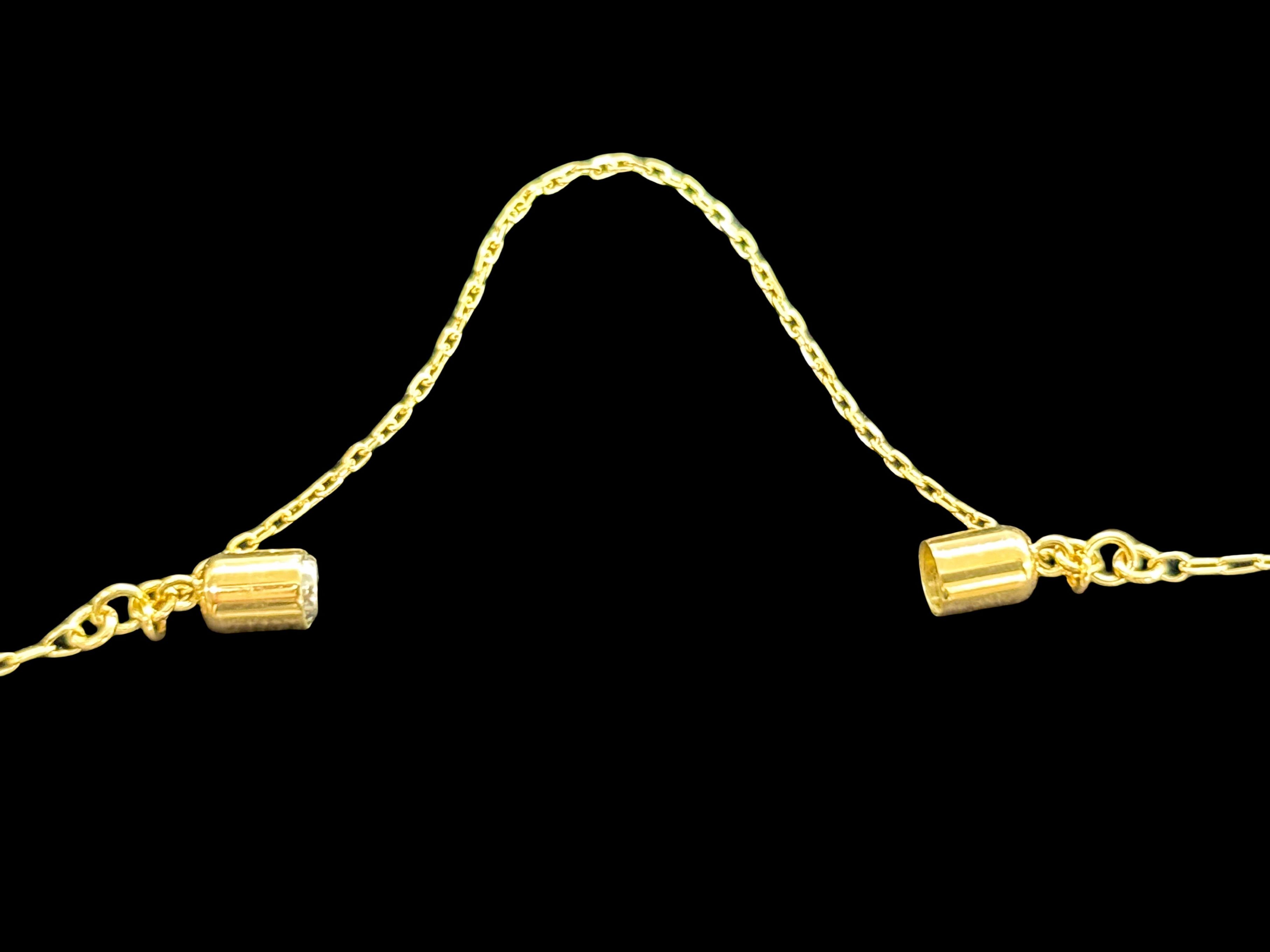 K18デザインブレスレット(マグネット金具付)は、可愛いらしいデザインが特徴の一品です。煌めく18金が手首を優雅に飾り、輝きを与えます。このブレスレットは、どんなコーディネートにも合わせやすく、デイリーユースに最適です。 使用されているマグネット金具により、簡単に着脱できるのも嬉しいポイント。忙しい日常の中で手間を省き、スタイリッシュに装飾を楽しめます。しっかりとした作りながらも軽やかなつけ心地で、長時間の使用もストレスフリーです。