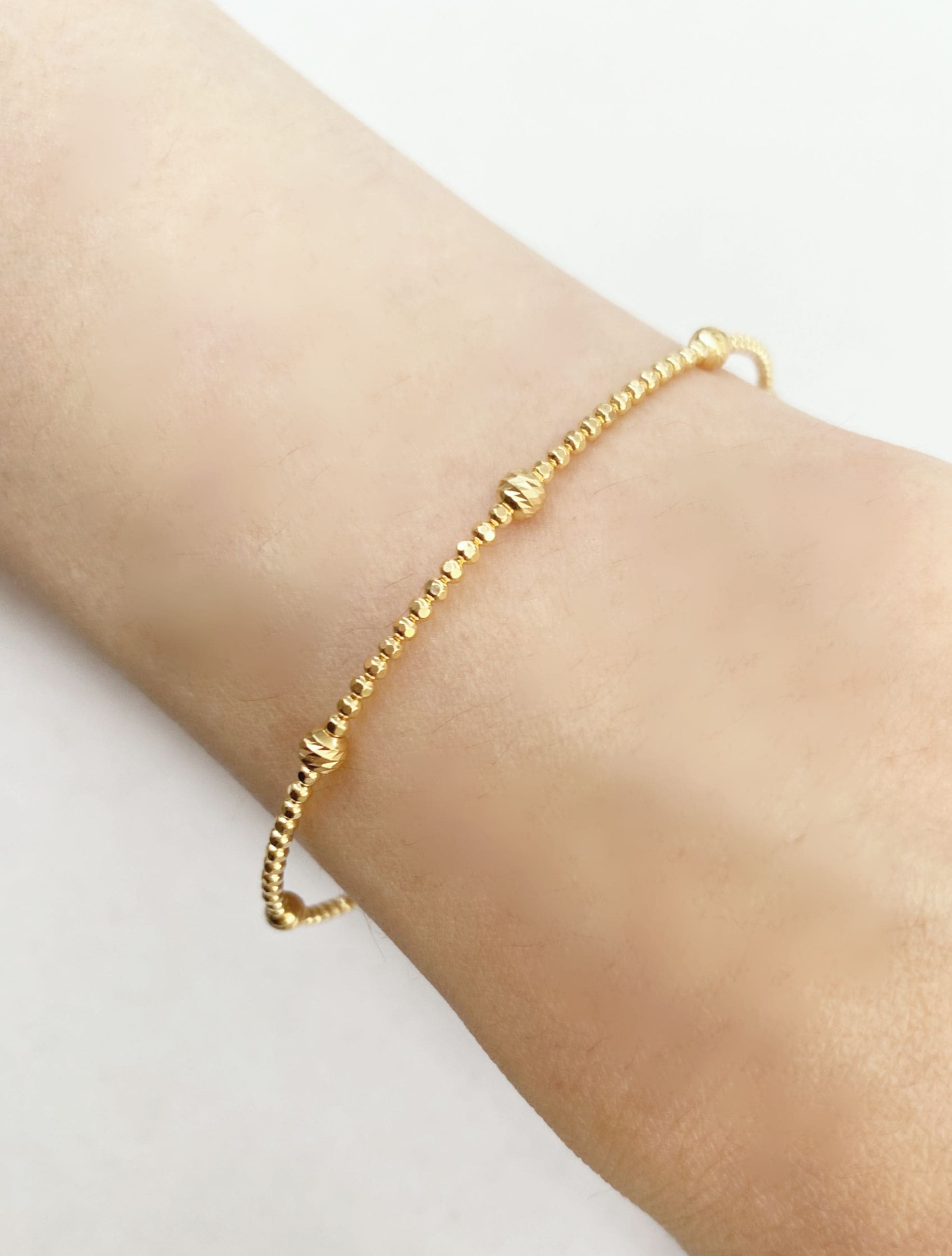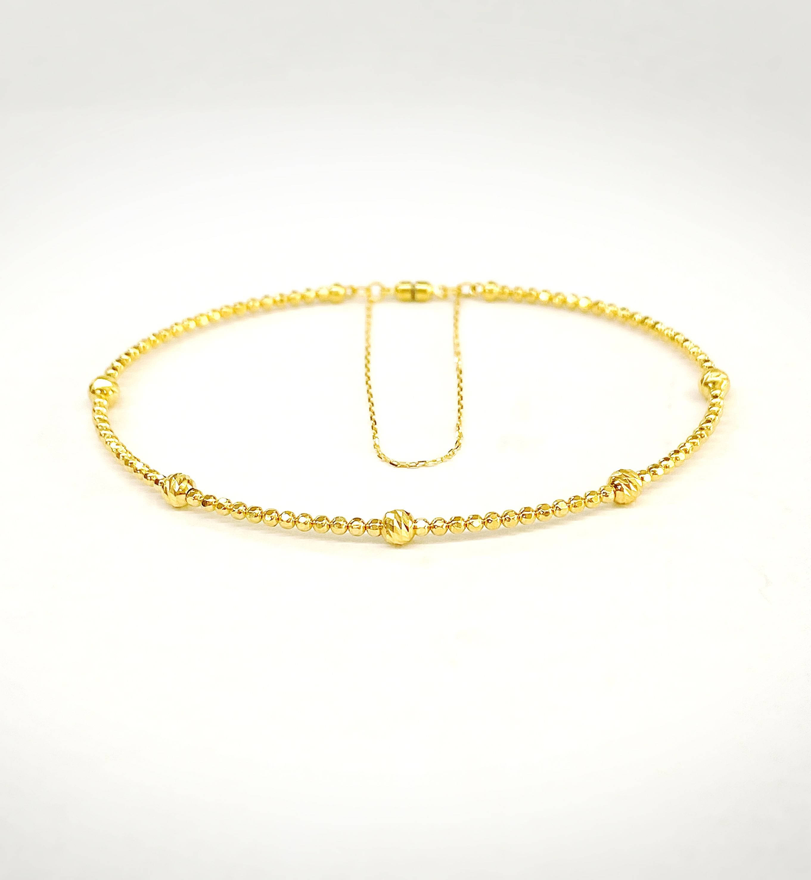 全長 約15.5cm! 普段、バングルが大きくてクルクルしてしまう方におすすめの商品☆ 形状記憶ワイヤー内蔵で、優しく手首を包み込むようにフィットしてくれます。 更に嬉しい、便利なマクネット金具仕様、安心のセーフティーチェーン付きです。 2種類のカットが施されたパーツたちが、お手元でそっと上品に煌めきます。